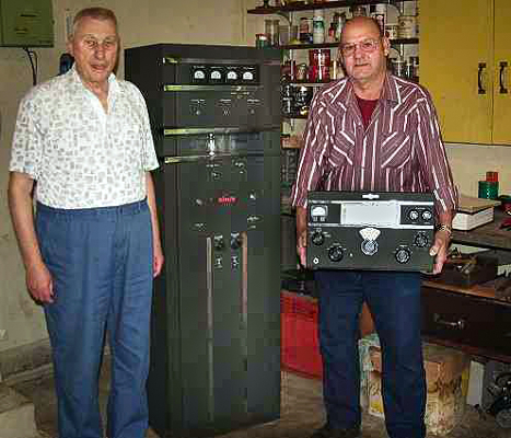 | Verne Brune (left), former engineering design manager for Collins Radio and project lead for the 30K1 with Jim Shoemaker (right) standing by my 30K1 / 310A rig prior to purchase.