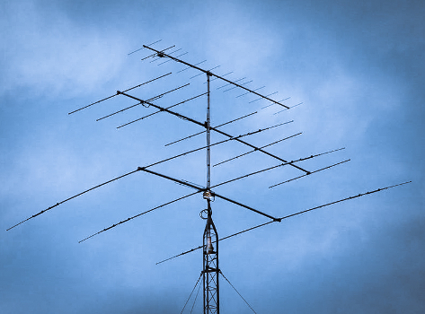 The antenna farm consists of a Hygain Hytower vertical 80 - 10 mteters, a three element tri-bander at 65 ft, a six element 6 meter beam at 70 ft, a 35 element 1296 beam at 56 ft, 10 element 222 yagi at 53 ft, a 25 element 432 beam at 50 ft, a 13 element 2 meter beam at 75 ft, an inverted L for 160 meters, an OCF Dipole for 80 - 10 meters, and a trap dipole for 30 / 60 meters.