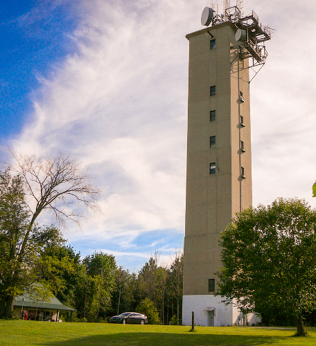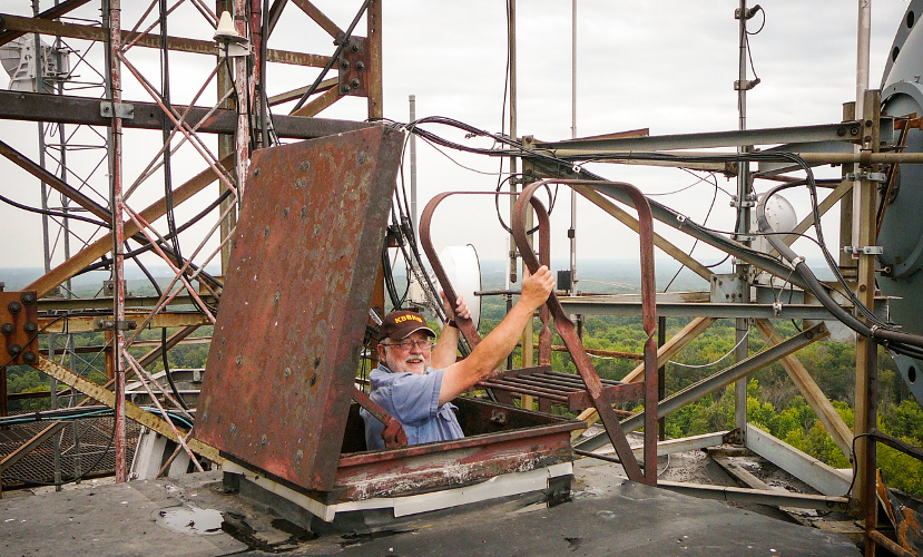 Danny W9DWS made his tower site available for our MCRN get-together on Sep 10, 2016. There was a morning rain that might have kept a few net members from making the trip. For those who attended, we had a great time socializing and some of us climbed the 250 steps, and then a ladder out a trap door to the top of the tower.