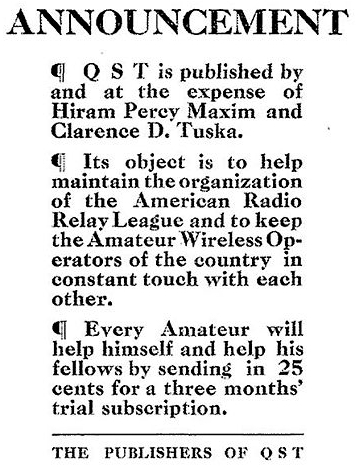 He created the ARRL in 1914 as a response to the lack of an organized group of "relay" stations to pass messages via amateur radio. Relaying messages allowed them to travel farther than any single station's reach at the time.