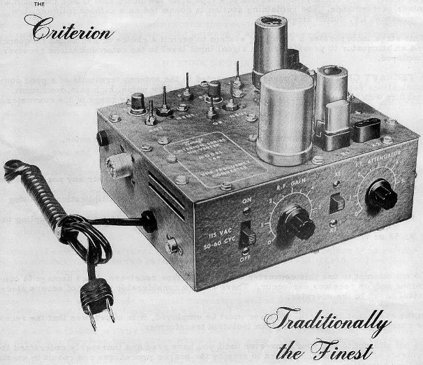 This needlessly HUGE front-end gain block allowed the converter to easily overload. I remember working a mobile station using a 1-watt Heathkit Sixer. When he got within a half mile of my QTH, the converter overloaded. Otherwise, the converter was highly sensitive and reliable. This would explain why Tecraft added RF Gain and IF Attenuation controls to the Criterion model shown below.