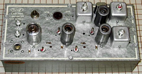 The tube pictured in the lower left was a dual triode cascode amplifier driving a pentode amplifier (center). The mixer is in the lower right with the XTAL controlled LO just above.