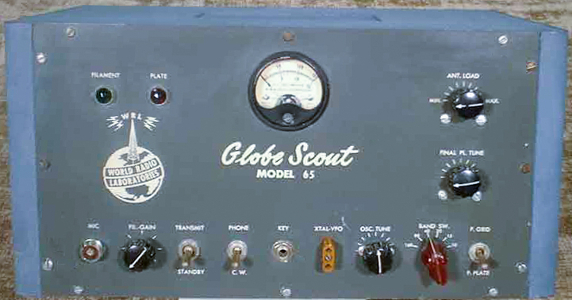 WRL manufactured some of its own products, notably under the Globe and Galaxy brand names. Globe Champion transmitter models appeared in 1948 and were reportedly the first to have the Globe logo on the front panel. The Champion covered 10-160 meters with power input rating of 150 watts. A companion speech amplifier and modulator were sold as accessories. WRL Globe subsequently produced other amateur transmitters including the Globe King, Globe Scout, Globe Chief and the Globe SideBander.
